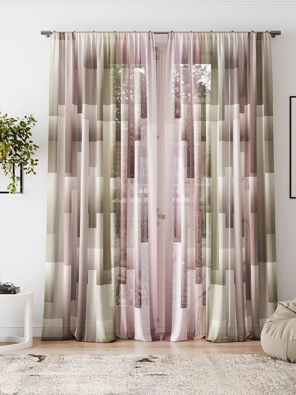 Шторы из тюля бежевого цвета с рисунком омбре