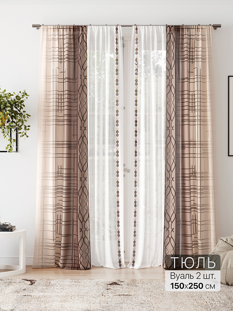 Шторы из тюля бежевого цвета дешевые