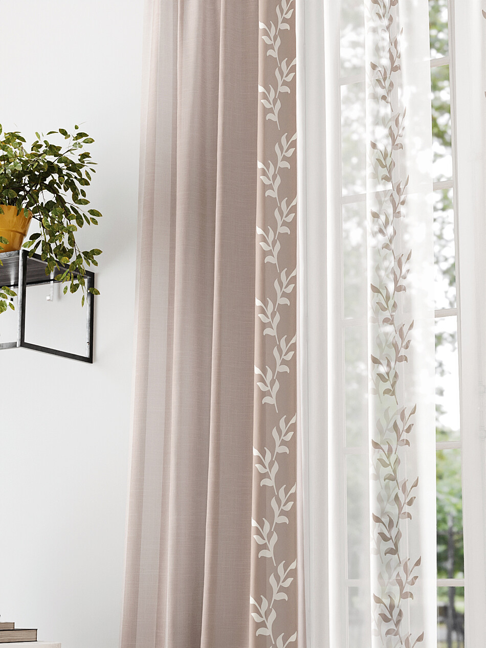 Шторы из тюля бежевого цвета с ажурным рисунком