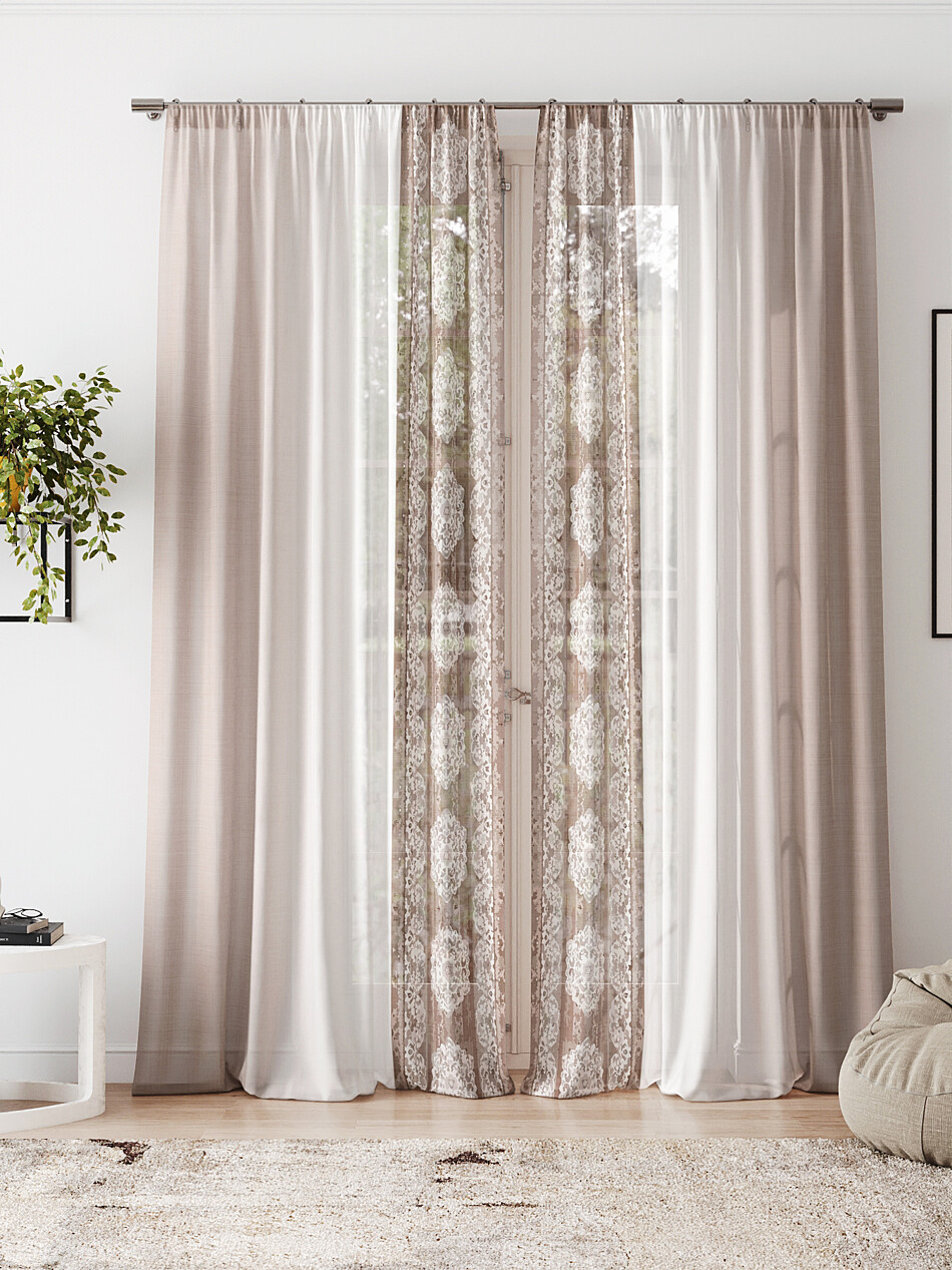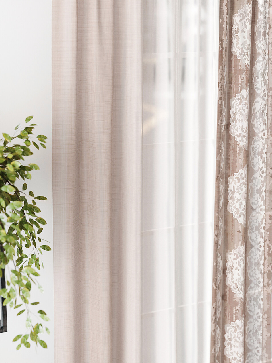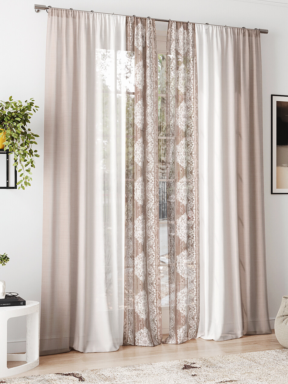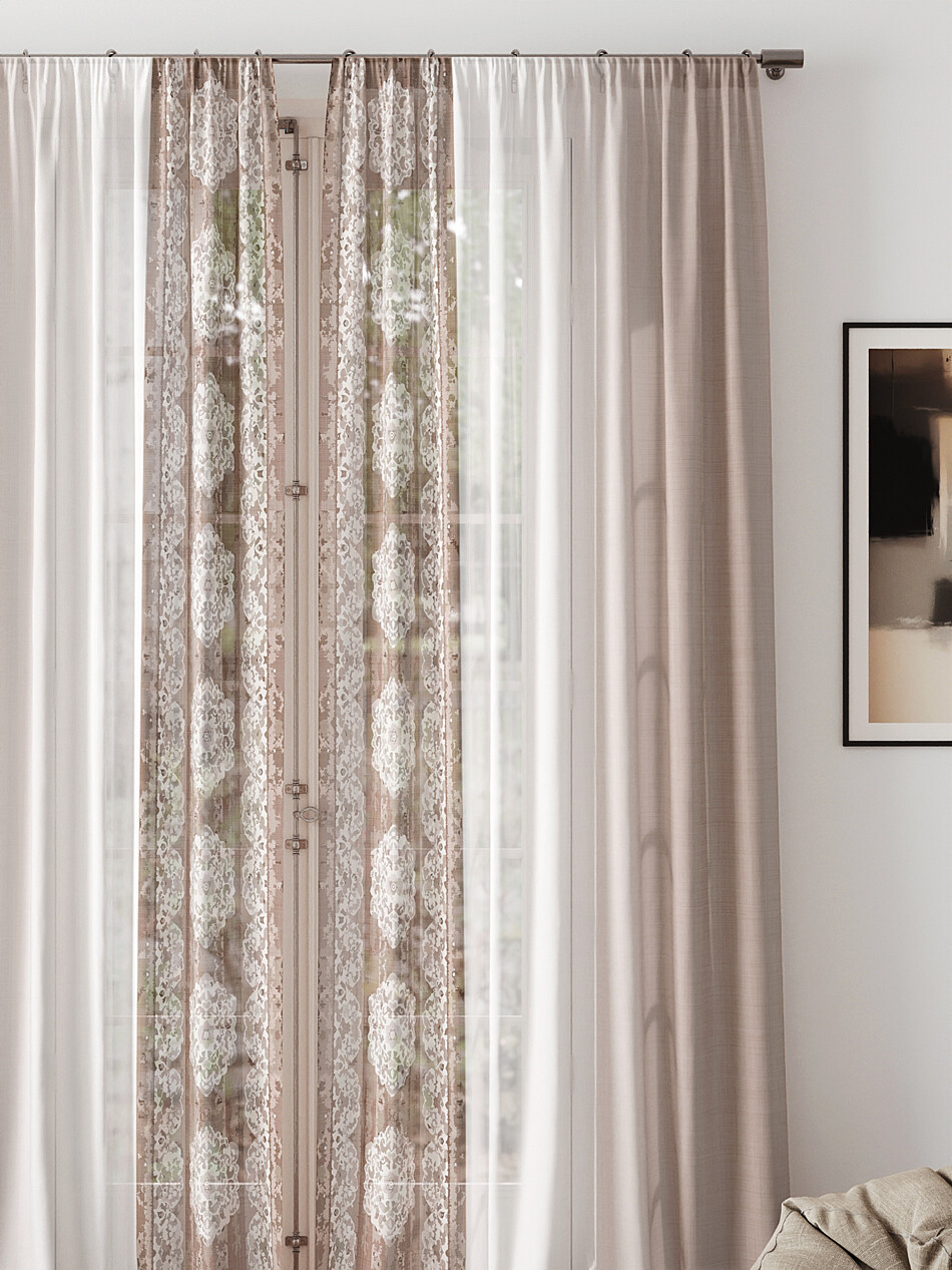 Шторы из тюля бежевого цвета с ажурным рисунком