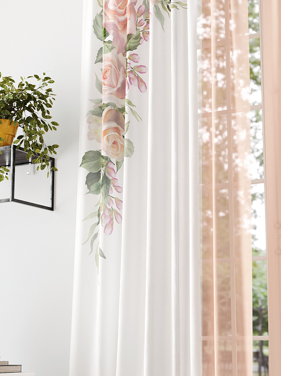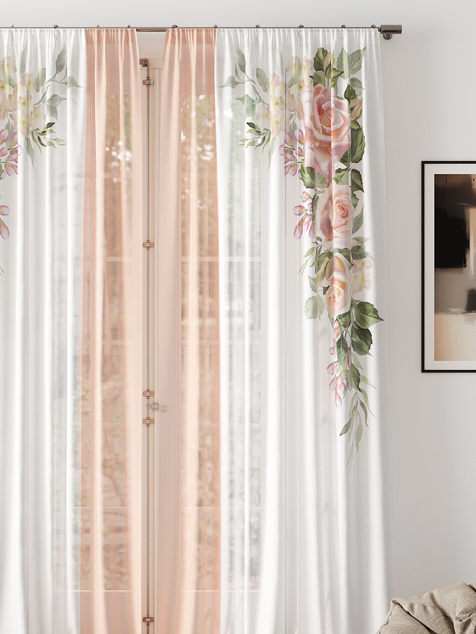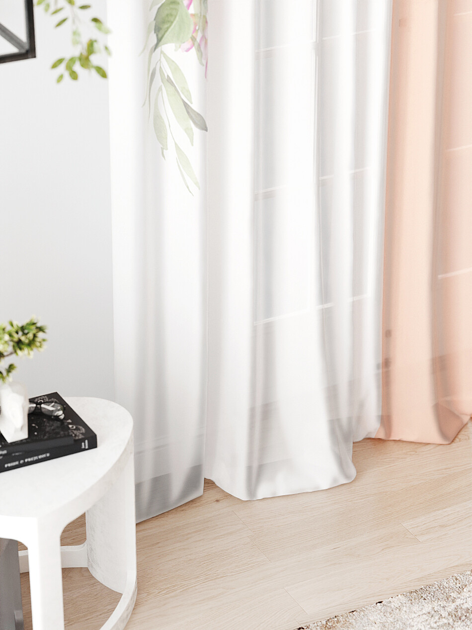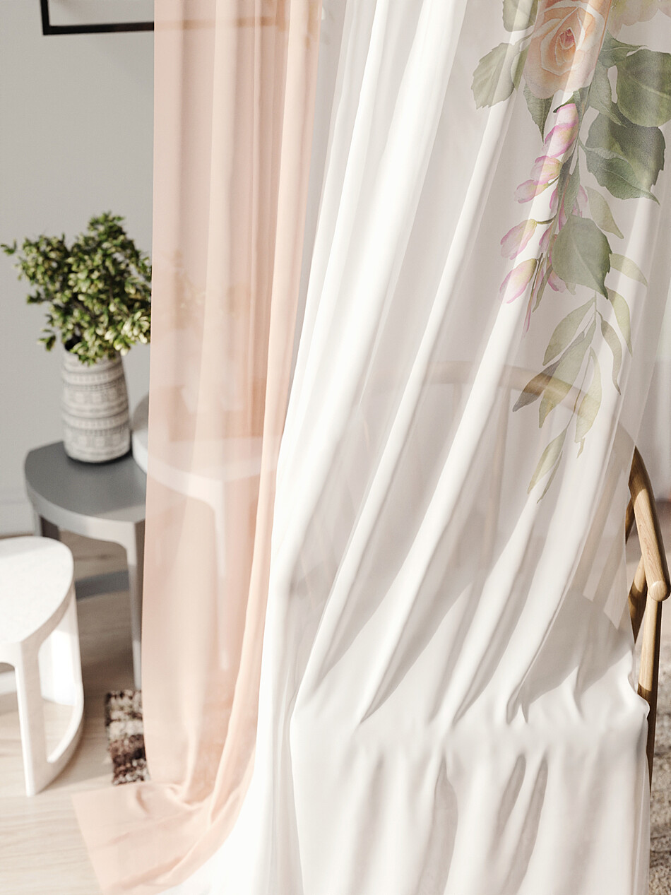 Шторы из тюля бежевого цвета с рисунком бабочки