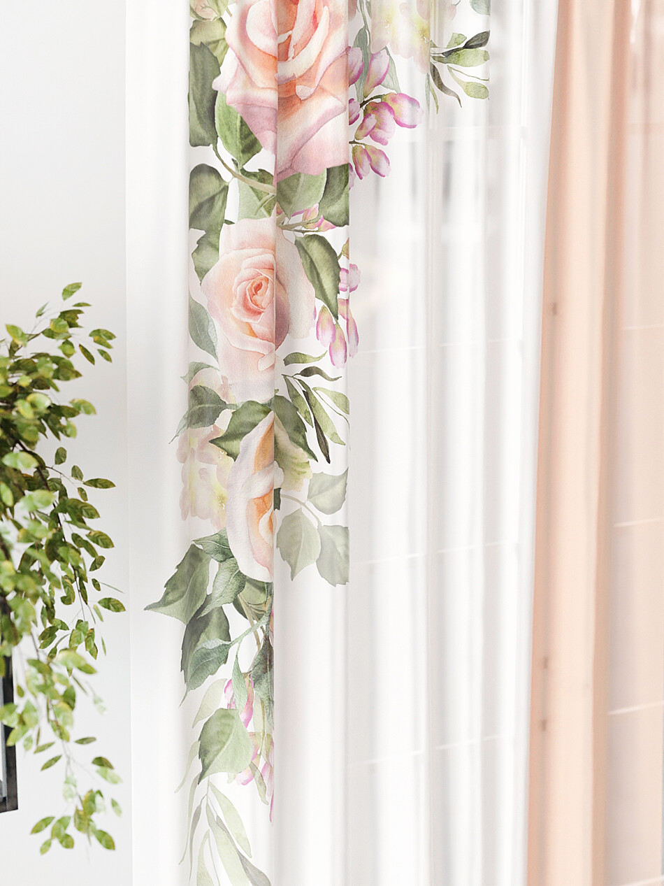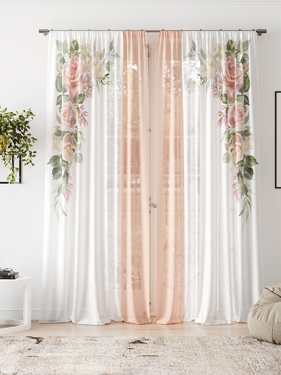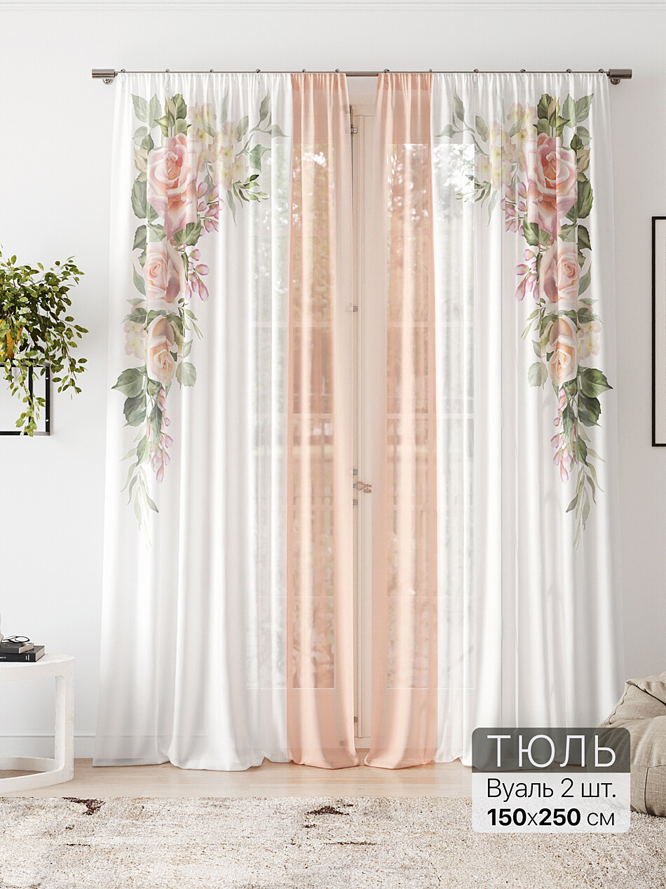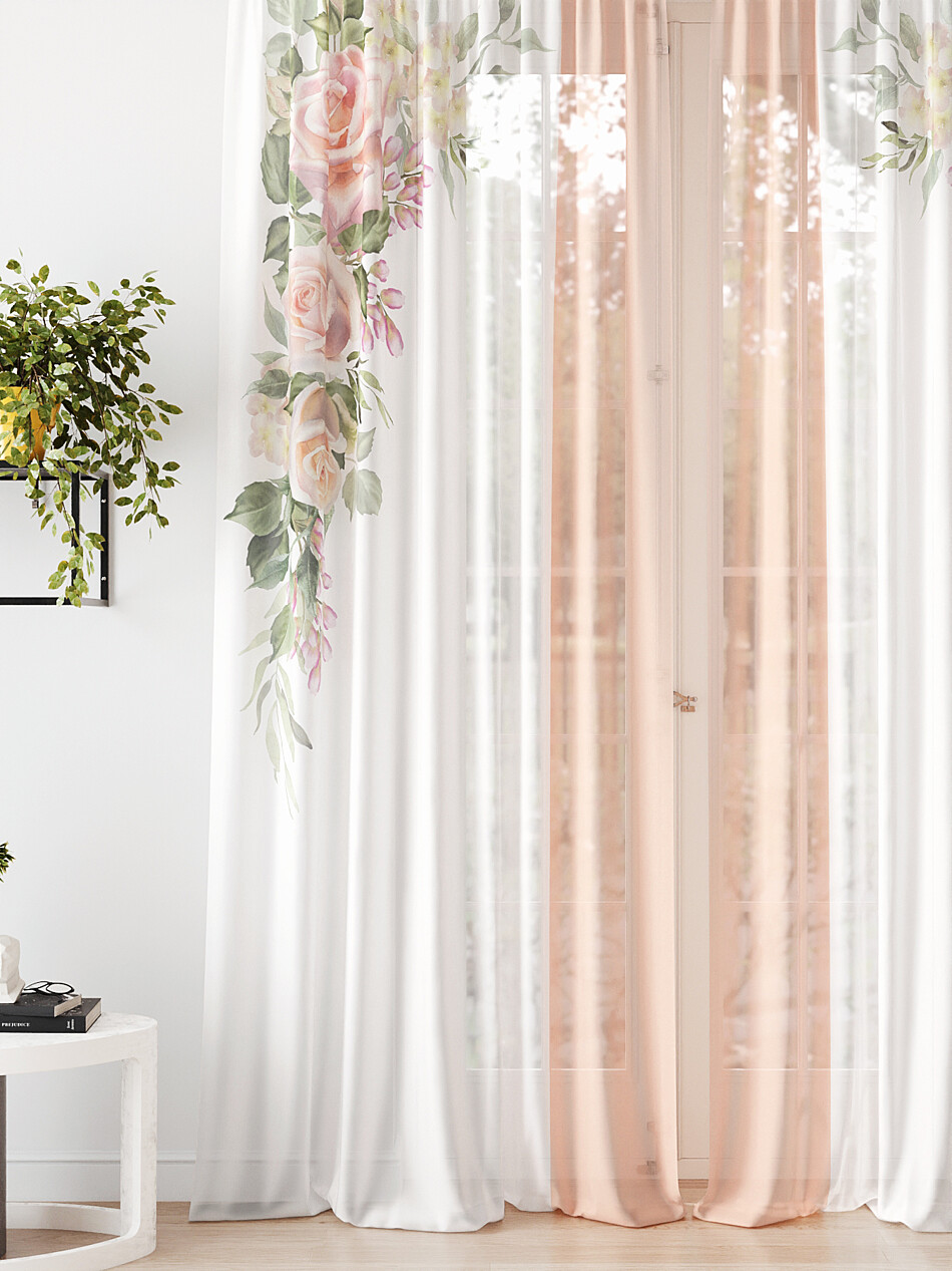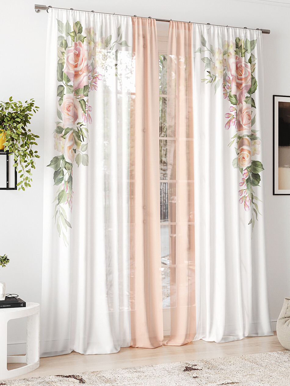 Шторы из тюля бежевого цвета с рисунком бабочки