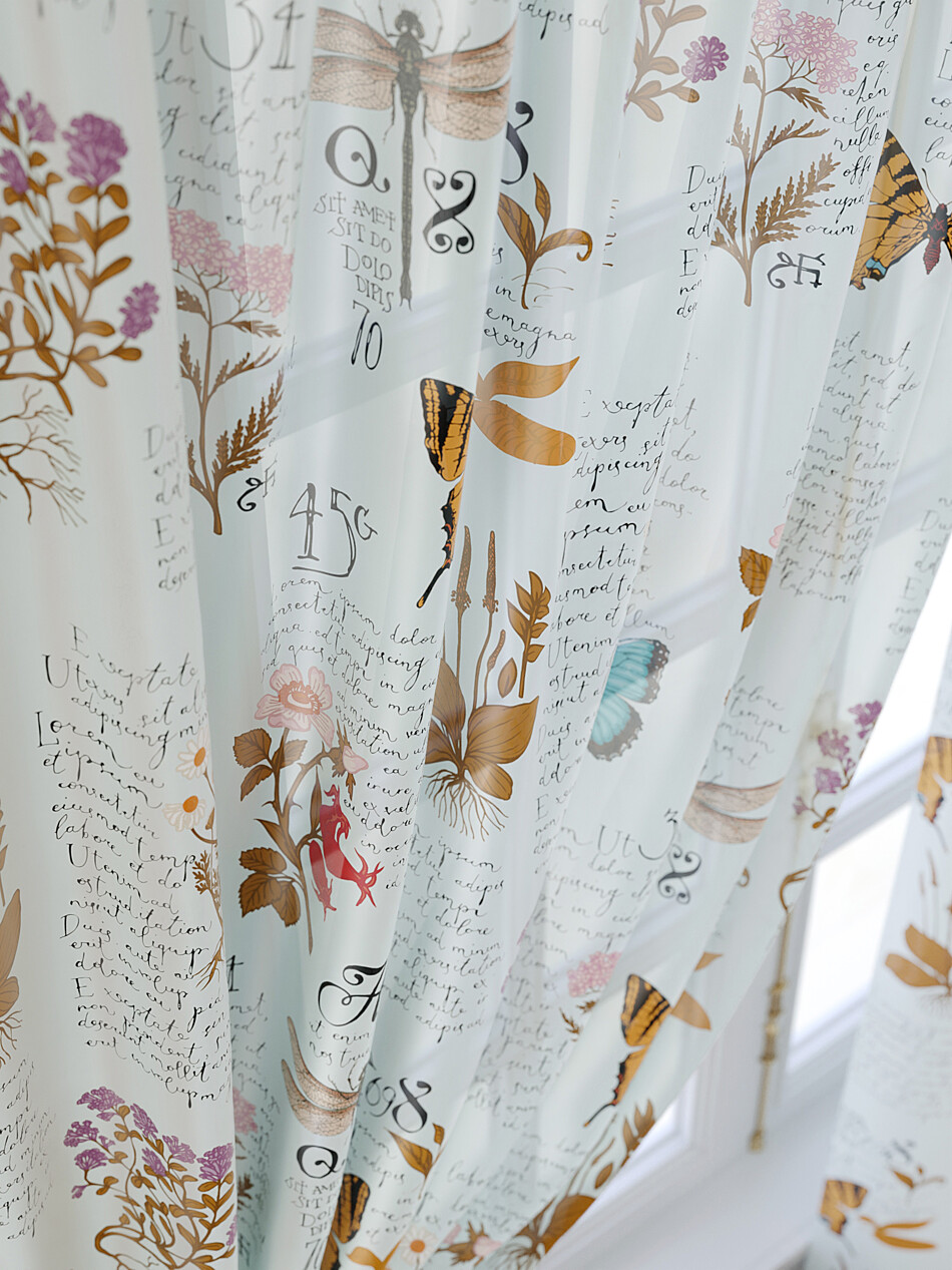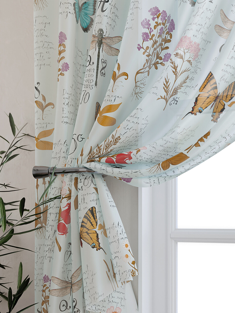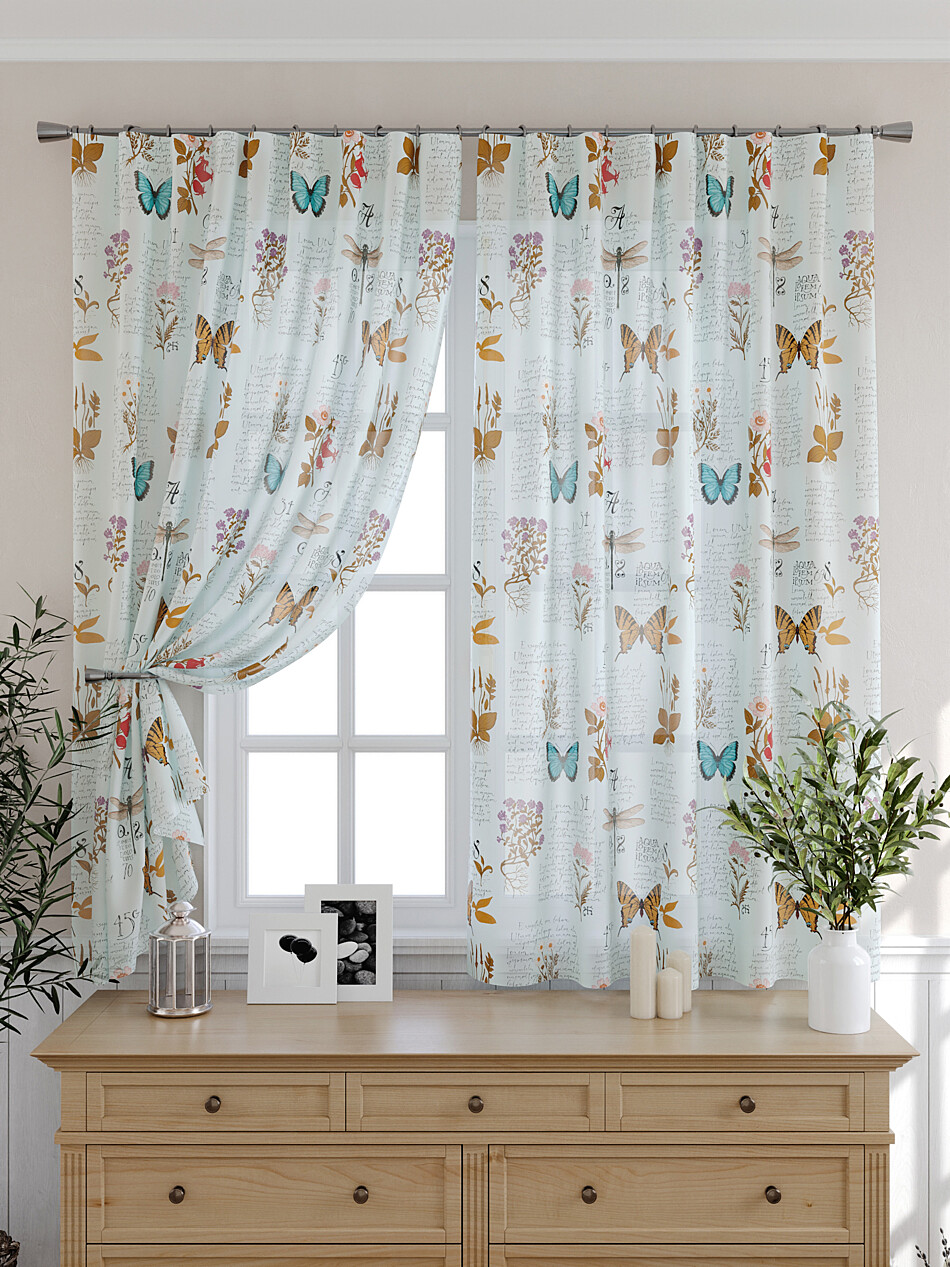 Шторы из тюля бежевого цвета с рисунком бабочки