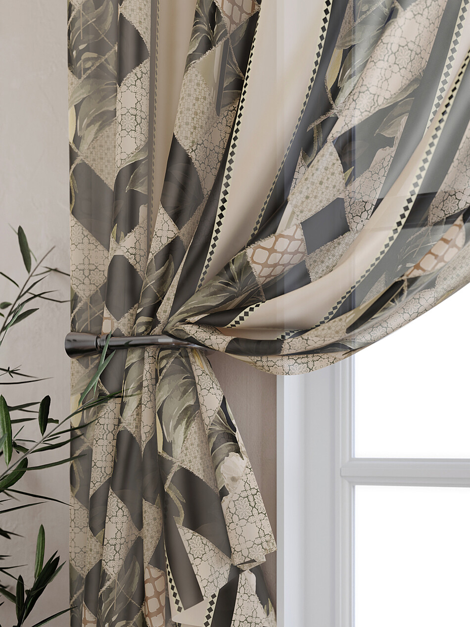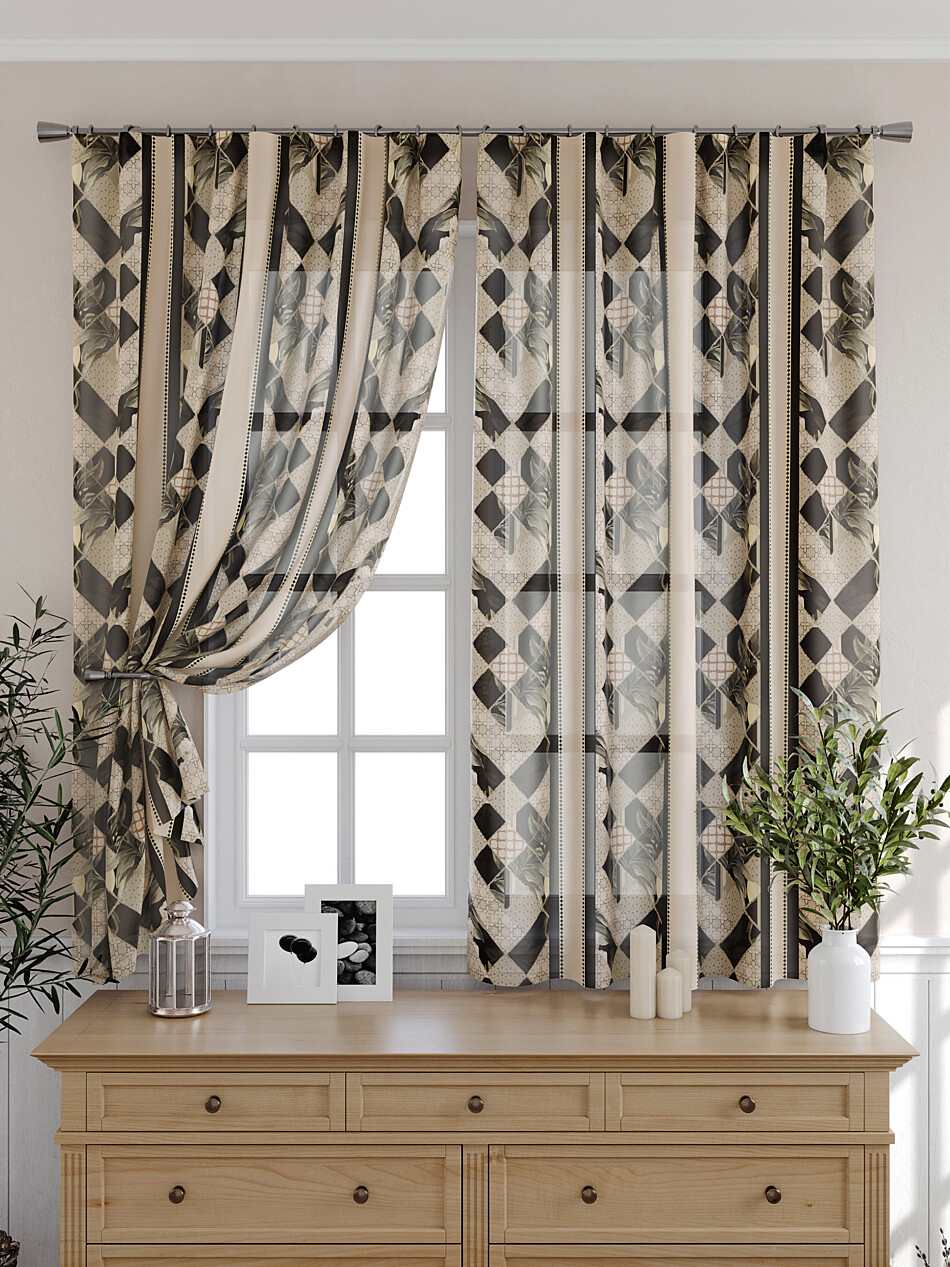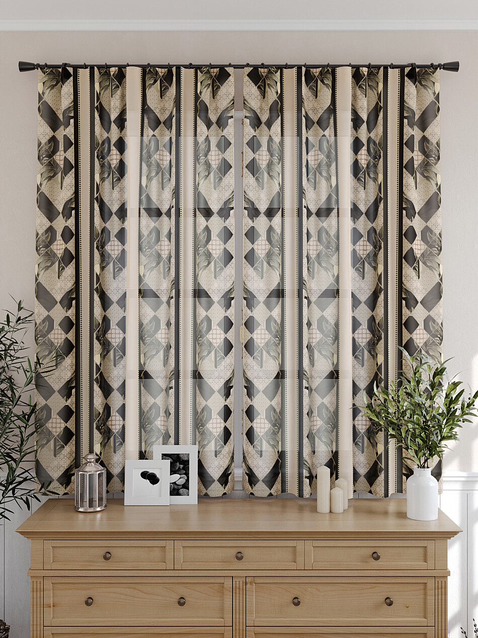 Шторы из тюля бежевого цвета с ажурным рисунком
