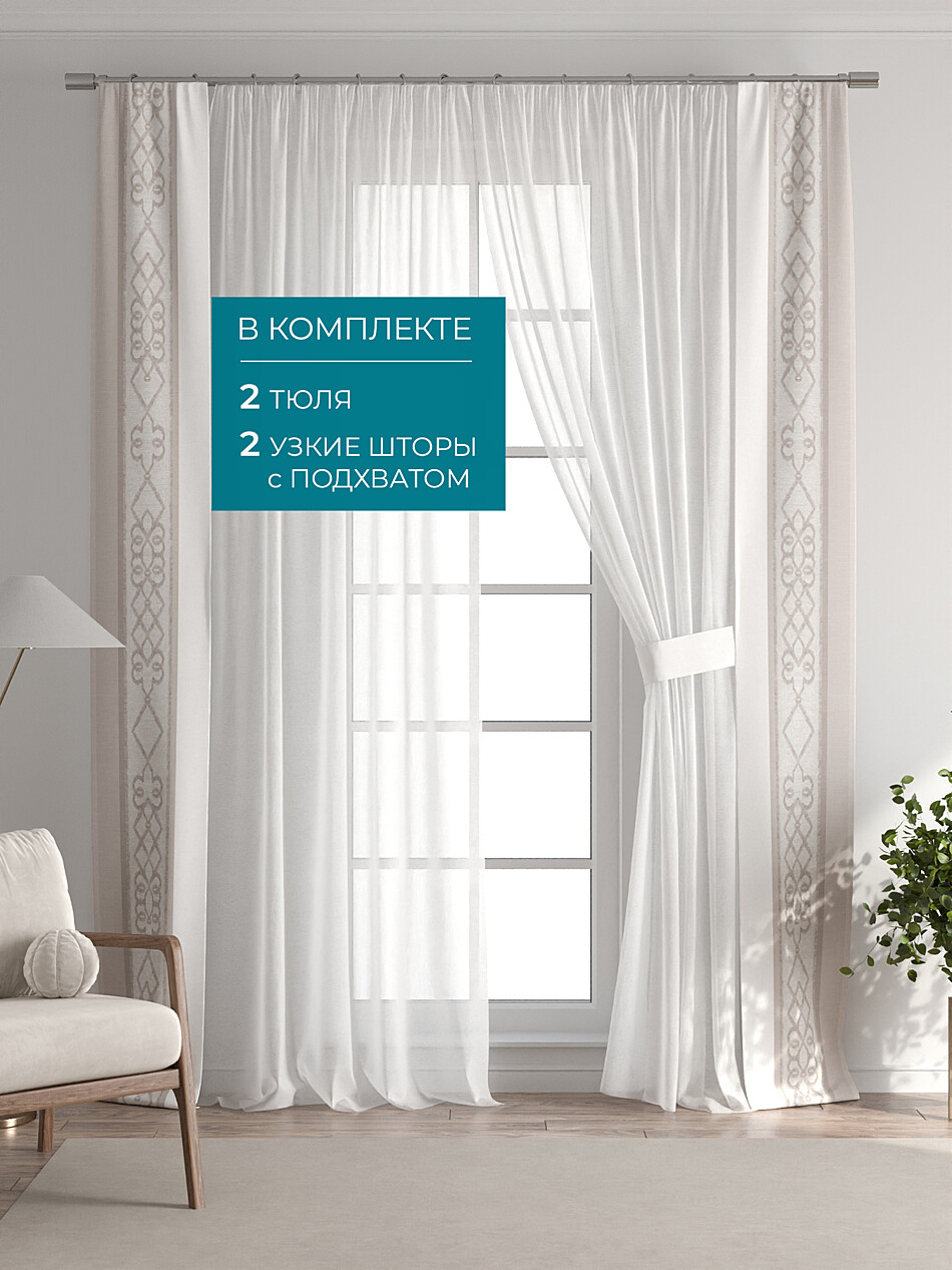 Тюль с декоративными подхватами, арт. 72704232