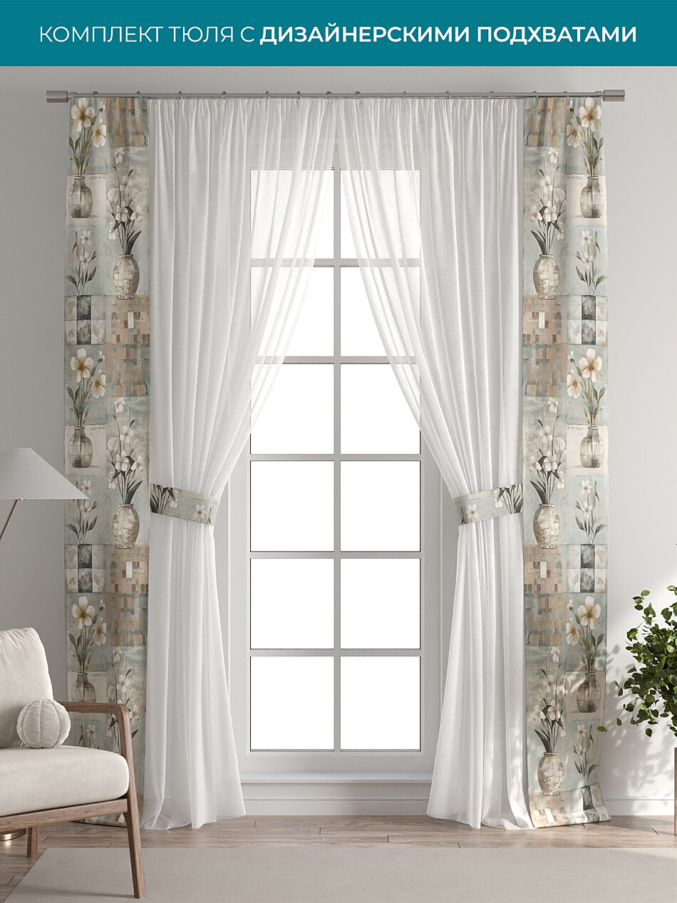 Тюль с декоративными подхватами, арт. 72704314