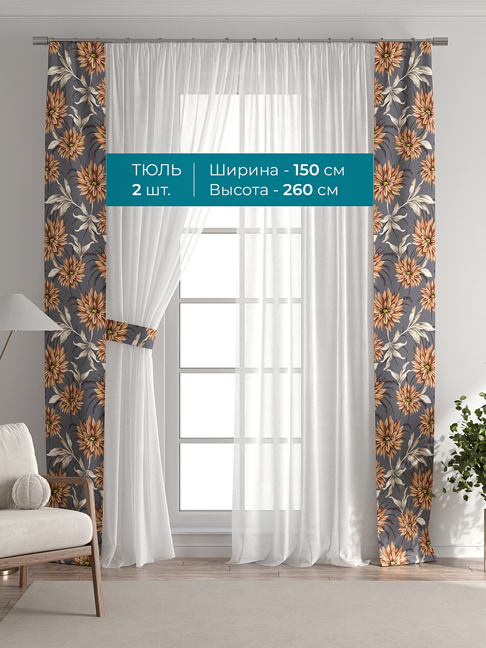 Тюль с декоративными подхватами, арт. 72704445